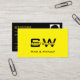 YOUR FAVORITE - Make a lasting impression with this modern business card design with monogram and (employees-) photo, on a plain bright yellow and black background.