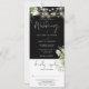 An all-in-one black and white wedding invitation featuring pretty string lights, rustic botanical floral greenery and elegant typography. The invitation includes an RSVP card that can be cut off and guest information details. Designed by Thisisnotme©