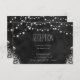 String of Lights Chalkboard © Sunny Mars Designs. Stylish, modern, elegant, classy, trendy, chic customizable formal or cute casual 5" x 3.5" wedding reception card enclosure with a beautiful black chalkboard design featuring bulbs of rope or string lights hanging above with a floral tropical design below.