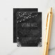 © Sunny Mars Designs. String of Lights Black Chalkboard Vertical Wishing Well Cards – Modern, elegant, trendy, chic customizable formal 2.5" x 3.5" wedding wishing well card with a beautiful black chalkboard design featuring bulbs of rope or string lights hanging above with a floral tropical design below.