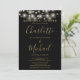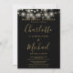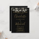 String Lights Black Gold Script Rehearsal Dinner Invitation