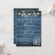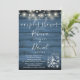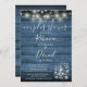 A rustic couples wedding shower invitation featuring pretty string lights and mason jars with stylish script typography, on a blue rustic wood background. Designed by Thisisnotme©