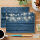 Blue Rustic Wood String Lights Script Wedding Designed by Thisisnotme Designs