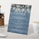 String Lights Blue Wood Wedding Drinks Menu Pedestal Sign
