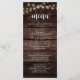 Modern Rustic Brown Kraft, String Lights Wedding Elopement Dinner Menu Card. Easy customise and personalise to your needs, and your dinner guests will be thrilled when they see these perfect and stylish dinner menu.