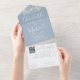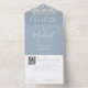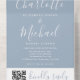 String Lights Dusty Blue Script QR Code Wedding All In One Invitation