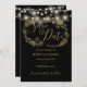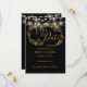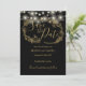 A stylish black and gold save-the-date card featuring pretty string lights and delicate floral illustrations. Personalize with your special save-the-date information. Designed by Thisisnotme©