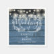 These stylish napkins featuring pretty string lights and a hand-drawn floral can be personalized with your information in chic white lettering on a rustic blue wood panels background. Designed by Thisisnotme©