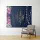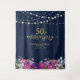 Celebrate your wedding anniversary with this custom tapestry. Your guests will enjoy taking a photo with this sophisticated party backdrop and remember your special day. The design features chic typography "50th Anniversary", string lights, and floral background. Matching invitation and party supplies are available at my shop BaraBomDesign. Thanks!