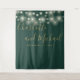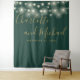 Featuring pretty string lights and chic typography script, this chic emerald green and gold wedding photo booth backdrop can be personalized with your names and special date. Designed by Thisisnotme©