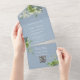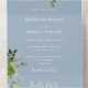 String Lights Greenery QR Code Dusty Blue Wedding All In One Invitation