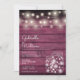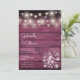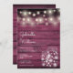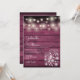 A stylish rustic wedding invitation featuring pretty string lights and mason jars. The happy couple's names are set in an elegant script above the special wedding details on a rustic burgundy wood background. The reverse features a matching rustic wood background. Designed by Thisisnotme©