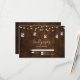 Beautiful dark wood with string lights and mason jars wedding RSVP Kindly Reply card. The mason jars have tiny hearts in them as well as lights. The hand lettered script typography looks amazing.