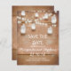 Perfect save the date flat card with rustic light colour wood background, string lights and sparkling mason jars. Please contact me if you need help with customization or have a custom colour request.
