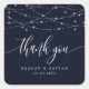 String Lights Navy Blue Elegant Wedding Thank You Square Sticker