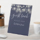 String Lights Navy Blue Script Guest Book Pedestal Sign