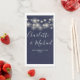 Navy blue elegant signature wedding design featuring pretty string lights and signature style names. These modern guest paper towels can be personalized with your information in chic white lettering. Designed by Thisisnotme©