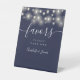 String Lights Navy Blue Wedding Favours Table Pedestal Sign