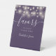 String Lights Purple Wedding Favours Table Pedestal Sign