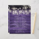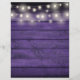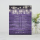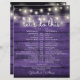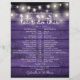 This rustic string lights wedding schedule-timeline can be personalized with your wedding details set in chic white lettering on a purple wood panels background. Designed by Thisisnotme©