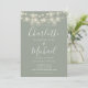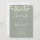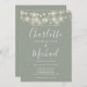 Elegant sage green signature wedding invitation featuring pretty string lights and signature style names, this stylish wedding invitation can be personalized with your information in chic white lettering. Designed by Thisisnotme©
