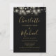 Featuring pretty string lights and signature style names, this elegant black and gold wedding invitation can be personalized with all your special wedding day information on the front, your wedding website details, and your QR code on the reverse. Designed by Thisisnotme©