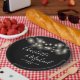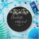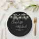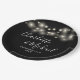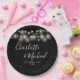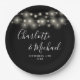 Elegant black and white wedding paper plates featuring pretty string lights, signature style names and your special wedding date. Designed by Thisisnotme©