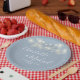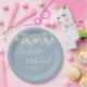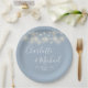 String Lights Signature Script Dusty Blue Wedding Paper Plate