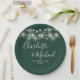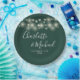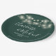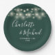 Elegant emerald green wedding paper plates featuring pretty string lights, signature style names and your special wedding date. Designed by Thisisnotme©