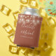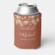 An elegant terracotta wedding favour can cooler featuring pretty string lights, stylish signature script names and special date set in modern typography. Designed by Thisisnotme©