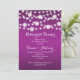 String of lights and white snowflakes purple winter wedding rehearsal dinner invitation featuring white twinkle glowing string of lights with white snowflakes on the top on purple gradient background. This modern and trendy wedding design is part of a wedding set or collection, is fully customizable and is perfect for a winter Christmas wedding. Some elements courtesy of vectorportal.com.