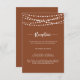 This string lights terracotta wedding reception enclosure card is perfect for a rustic wedding. The design features beautiful hand-painted string lights in a terracotta background.