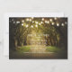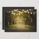 String of lights trees path rustic bridal shower invites for outdoor dinner inspired by old oaks covered by Spanish moss. Southern country style invitation perfect for dreamers bride and groom who are planning their bridal shower with trees and string lights embellishments. Perfect invite for park, garden or woods bridal shower venue.