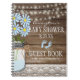 Let your baby shower guests write something special to the mom -to-be. This adorable baby shower guestbook shows an image of barn wood with a string of lights, mason jar filled with blue daisies and blue baby footprints. An image of lace borders the bottom. Guest book is personalized with mommys name and shower date. Customize all font, text and colours. To see more fabulous products, please visit "The Hungarican Princess - A Boutique" @ zazzle.com/hungaricanprincess. Congratulations.