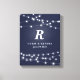 Your favourite bride and groom will love this customizable canvas featuring their wedding day or anniversary! Strings of white lights surround a monogram, couple's names and wedding date or other special occasion. You can change the navy background colour by clicking the Customize button. Makes a beautiful, modern, personalized gift.