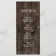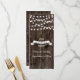 String of lights and vintage banner on old wood summer wedding menu card featuring a white banner with brown outline on old brown wood background. This modern and trendy wooden wedding design with vintage elements is part of a wedding set or collection, is fully customizable and is perfect for an outdoor summer night barn western rustic wedding. Note that there is not real wood just printed images.