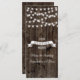 String of lights on old wood wedding menu card