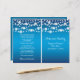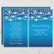 String of lights and white snowflakes blue winter wedding ceremony and party folded program featuring white twinkle glowing string of lights with white snowflakes on the top on blue gradient background. This modern and trendy wedding design is part of a wedding set or collection, is fully customizable and is perfect for a winter Christmas wedding. You will have to fold it in the centre. Choose only this type of paper-value as it folds well. Some elements courtesy of vectorportal.com.