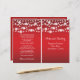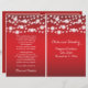 String of lights and white snowflakes red winter wedding ceremony and party folded program featuring white twinkle glowing string of lights with white snowflakes on the top on red gradient background. This modern and trendy wedding design is part of a wedding set or collection, is fully customizable and is perfect for a winter Christmas wedding. You will have to fold it in the centre. Choose only this type of paper-value as it folds well. Some elements courtesy of vectorportal.com.