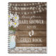 Let your baby shower guests write something special to the mom -to-be. This adorable rustic country baby shower guestbook shows an image of barn wood with a string of lights, mason jar filled with white daisies and baby footprints. An image of lace borders the bottom. Guest book is personalized with mommys name and shower date. Customize all font, text and colours. Perfect for a bridal shower as well. To see more fabulous products, please visit "The Hungarican Princess - A Boutique" @ zazzle.com/hungaricanprincess. Congratulations.