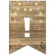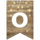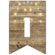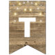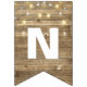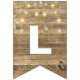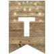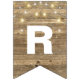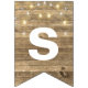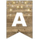 string of party lights on rustic wood bunting flags