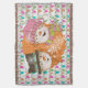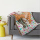 Pretty Christmas holiday Strings of Lights and Snowmen throw blanket with white background with lots of colourful strings of Christmas tree lights, an orange with white polka dots circle and a snowman couple with top hat, winter hat, and scarves with white snowflakes!