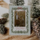 Customize this Sage Green Stripes, Garland, and Red Bow Christmas Photo Card with all your own details. Features whimsical hand drawn frame with area for you to upload your own photo.