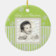 Spring Green stripes and snowflakes photo ornament. Add any photo and change text. Great for newlyweds, new babys, family photos and more.