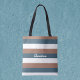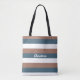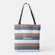 Stripe Pattern Personalize Teal Brown White Tote Bag