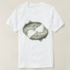 The t-shirt’s design features a pair of striped bass (stripers) illustrated by artist Dawn Witherington.
