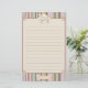Very trendy Beagle stationery is brown, pink, and blue. A hound silhouette is at the top, and a dog bone at the bottom. The four corners of the lined section are in place with paw prints. Cute dog lover stationery for all your letters!