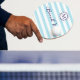Serve up fun in style with this custom ping pong paddle, featuring fresh blue and white stripes, a monogram with chic double-circle “porthole” surround, and the playful script “Beach Vibes.” This paddle brings a preppy, beachy look that stands out at any backyard match or seaside party, with the elegant design bringing coastal flair to every game. A perfect gift for beach lovers, or anyone who wants to keep the good vibes rolling. Click 'Personalize' to add your initial as a monogram for the finishing touch.