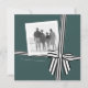 Striped Bow Square Holiday Photo Card Green