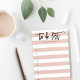 Chic yet whimsical striped post-it notes in millennial blush pink and white feature "to do list" at the top in trendy brush lettered typography and your name or monogram beneath, with numbered lines 1-10 to keep track of all your most important tasks.